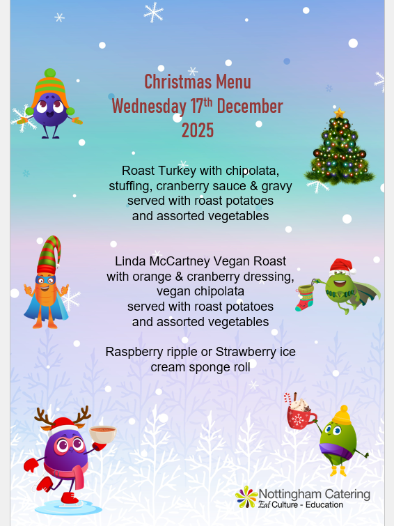 Please remember children should either have dinners or sandwiches on a whole weekly basis. There should be NO mid-week changing as this causes problems ordering food in advance and makes unnecessary waste. Dinners must be ordered/paid for on Mondays by 9am.