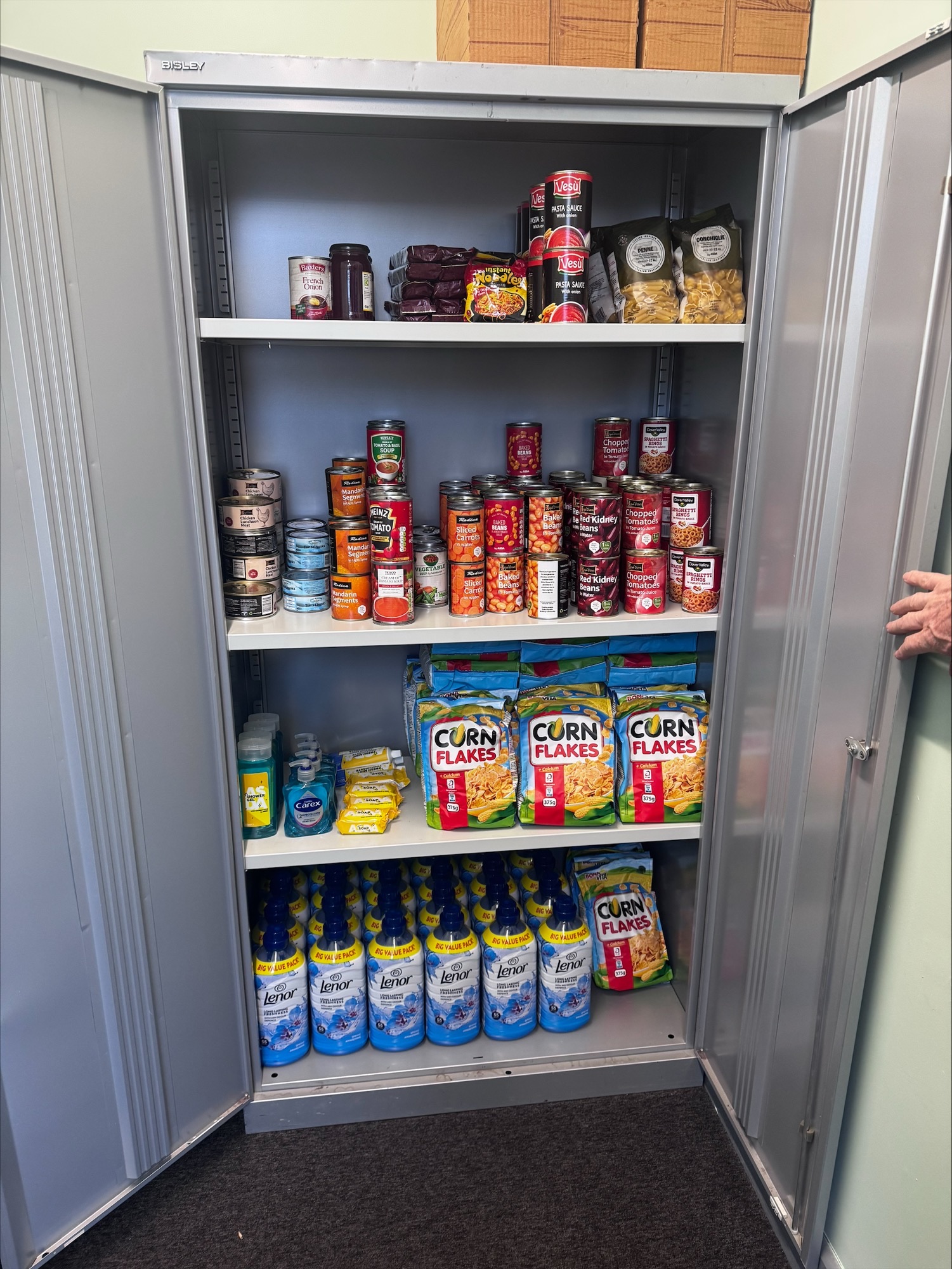 We are trying to fill a cupboard of essential foods, toiletries, sanitary products and washing powder etc for parents to come and help themselves to if you are struggling.