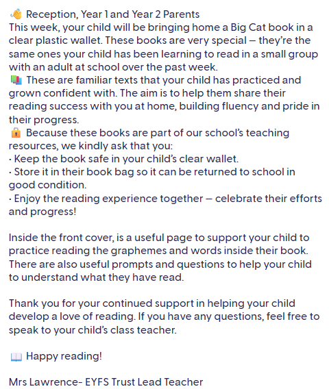 A huge thank you for attending Parent’s Evening this week. It was wonderful to see how proud the children were when sharing their work with you! They are working so hard to be the best they can be, and your support makes a big difference.